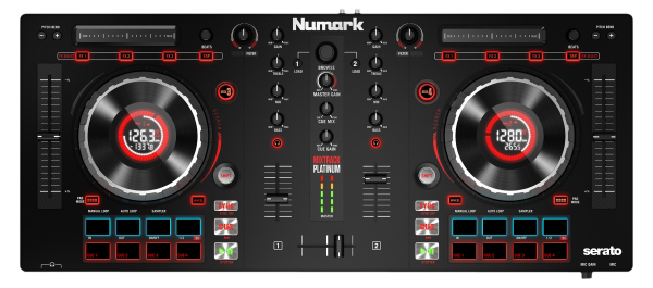Numark presents the Mixtrack Platinum DJ controller. This latest addition to the Mixtrack Numark family.The Mixtrack Platinum offers a host of great features, such as a built-in custom LCD display screen in each 5†capacitive jog wheel, 4-channel mixing