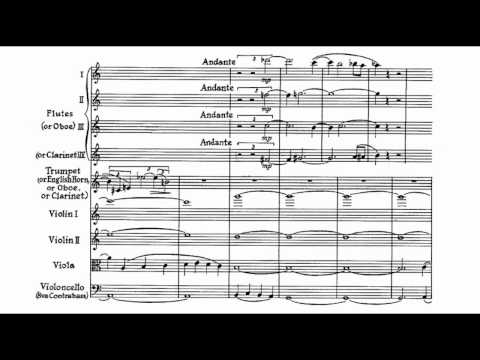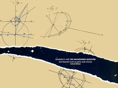 très inhabituelle de trompette soliste, quatre flûtes, et quatuor à cordes, [Charles Ives] posa l'environnement musical et sonore qui restera comme son style. Les cordes, situées hors de la scène, jouent très lentement, tandis que la trompette, seule face au public, joue à différentes occasions des motifs très courts que Ives décrit comme « l'éternelle question de l'existence ». A chaque fois, les flûtes, sur scène, répondent à la trompette par une explosition stridente, excepté la toute dernière fois : c'est la question sans réponse (the unanswered question). "