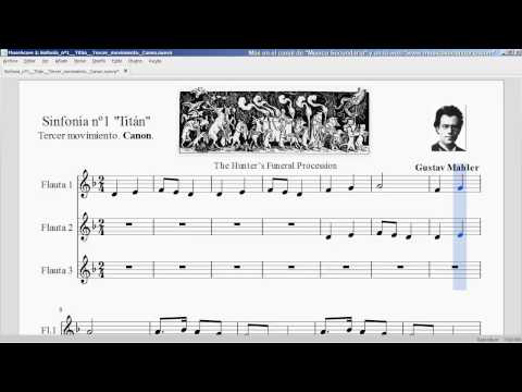 Sinfonía nº1 (Titán), 3er Movimiento. Canon "El cazador". Gustav Mahler. Partitura flauta.