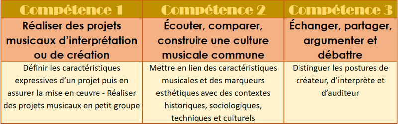 Les domaine des styles : l'élève distingue, identifie et situe une musique dans différentes interprétations ou arrangement. Il identifie et situe une musique dans différentes interprétations ou arrangements.