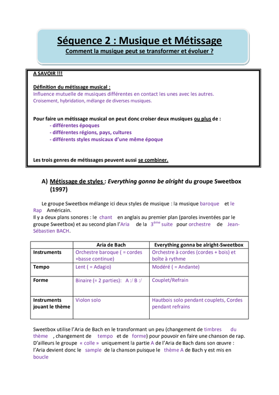 Metissage Fiche Eleve