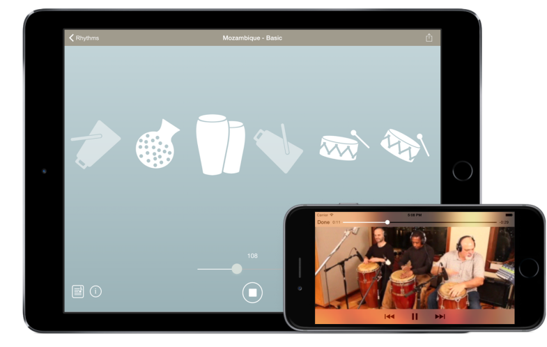 PercussionTutor is an iPhone/iPad app for dedicated world percussion enthusiasts. The app (with no in-app purchases!) and its free companion book feature a unique library of world rhythms and instruments played by first-rate NYC percussionists and drummers.